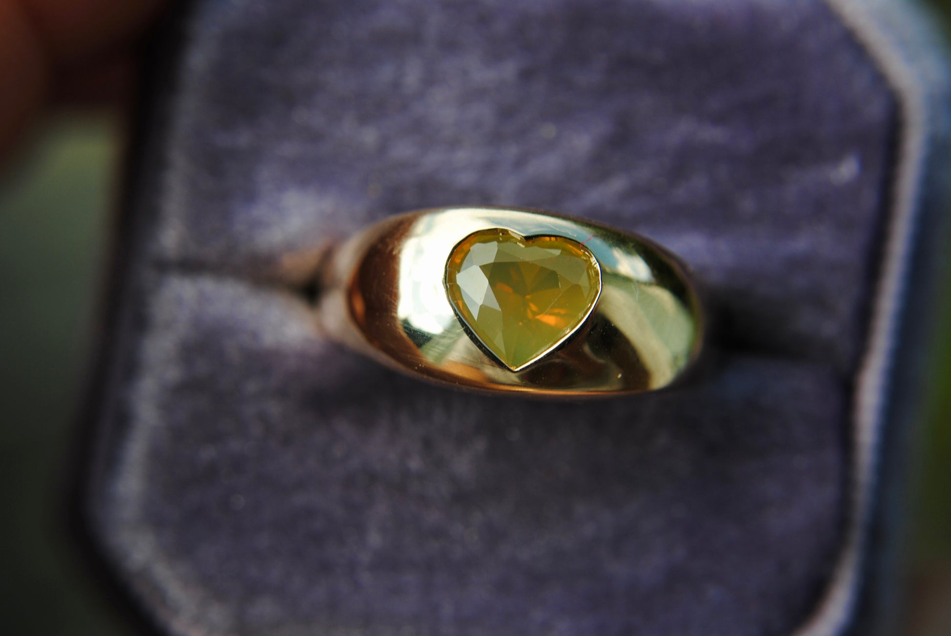 Heart Throb - Yellow Opalescent Sapphire Heart Bombe Ring